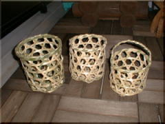 これを4段ほど行なうと ザル型になってきます。 最後の段で、残って出ている 竹をまき込む様に 絡めていきます。 ホントにこれで解けないのかな? |