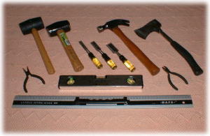 | アックス ノッチやグルーブを刻むときの西洋斧。軽めで刃の幅が小さいため狭いノッチのバリ落し等には非常に使いやすい。これは自作品ではありませんが、目立ては自分で行います。 |